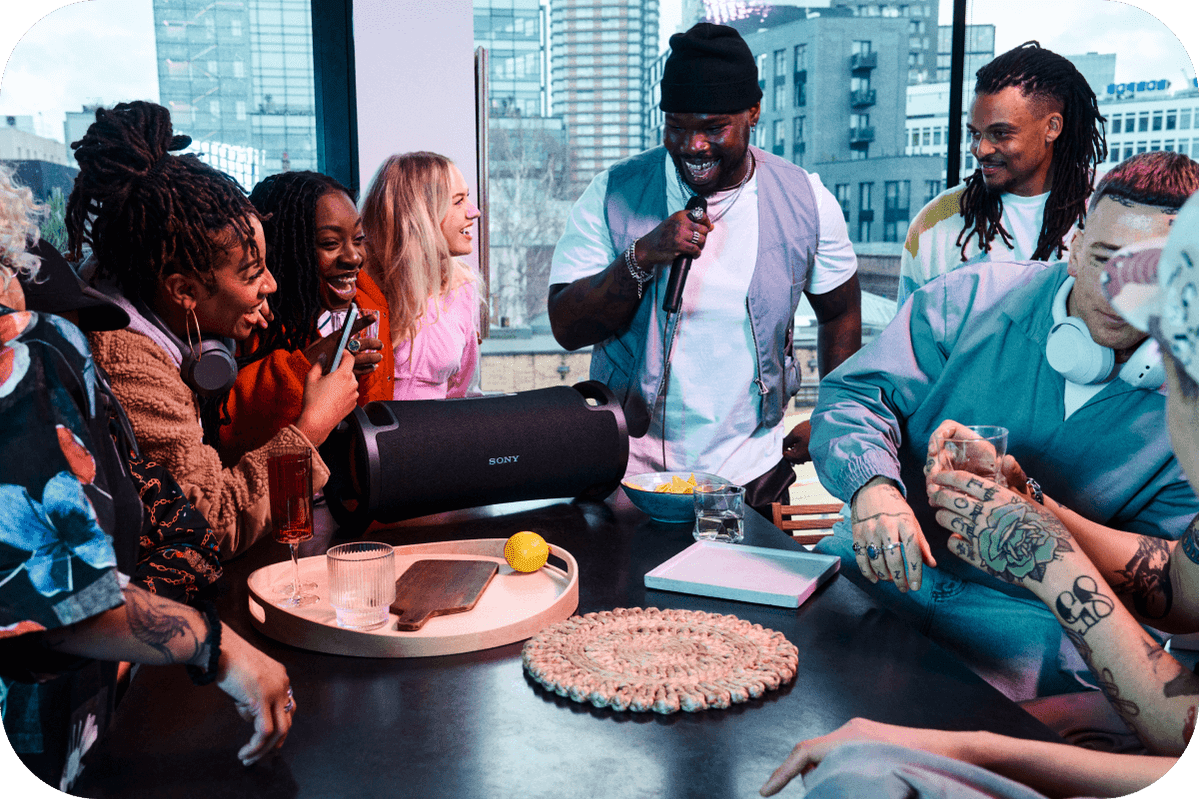 Плануєте більшу подію? Party Connect1 дозволяє бездротове підключення до 100 сумісних динаміків Sony та синхронізація звуку та освітлення.